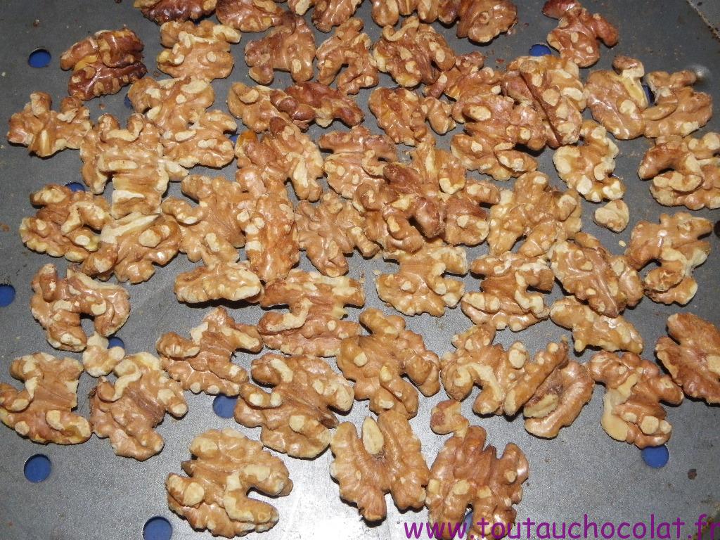 - J'ai mis les cerneaux de noix sur une plaque et je les ai torréfiés 10mn au four à 160°C. A la sortie du four, j'ai trié et enlevé les cerneaux trop petits.